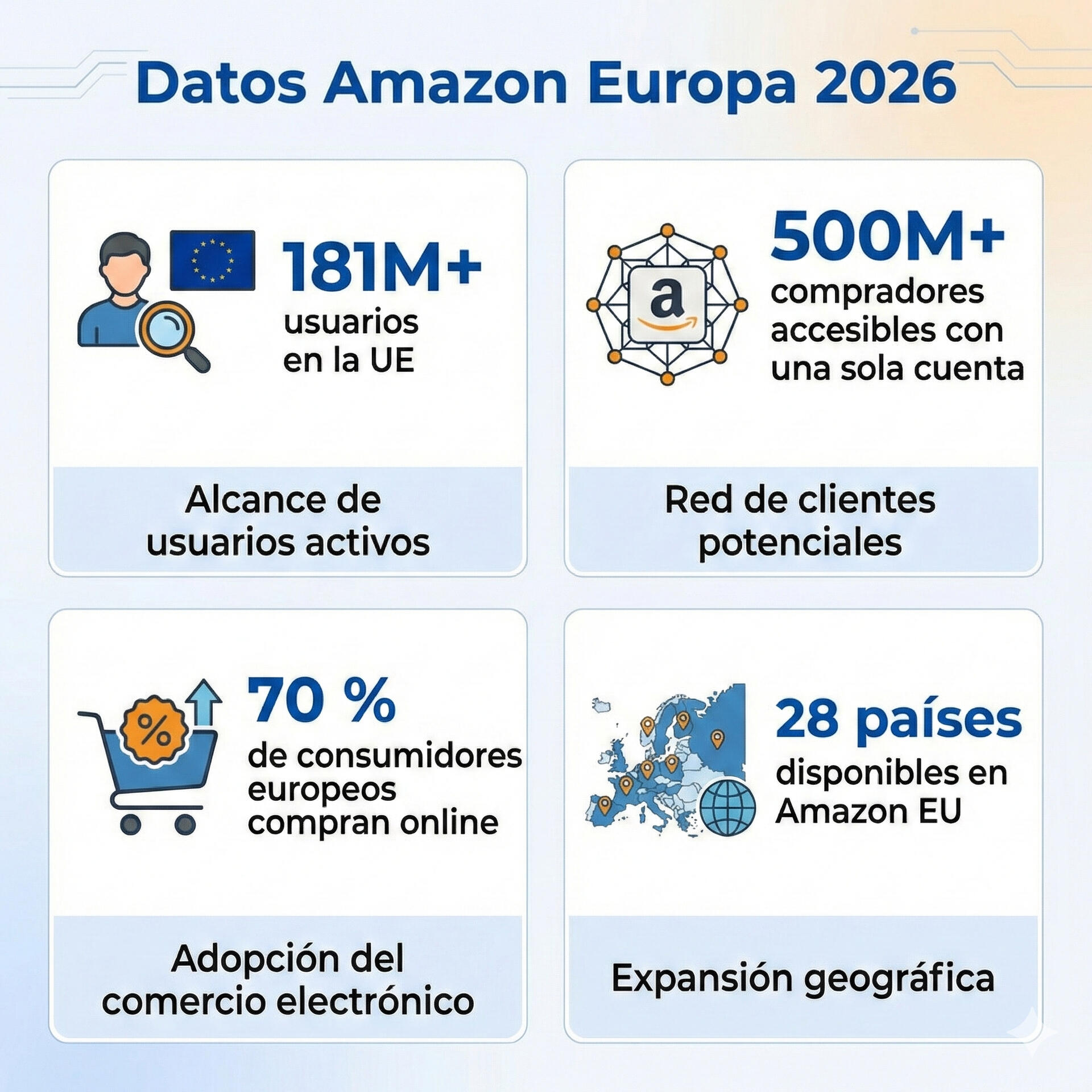En 2026, Amazon ha realizado una reducción de las comisiones en la mayoría de categorías de productos. Esta reducción, junto con el acceso al marketplace con mayor clientes de Europa y del mundo, lo convierten en una oportunidad sin precedentes para expandir tu negocio en 2026.